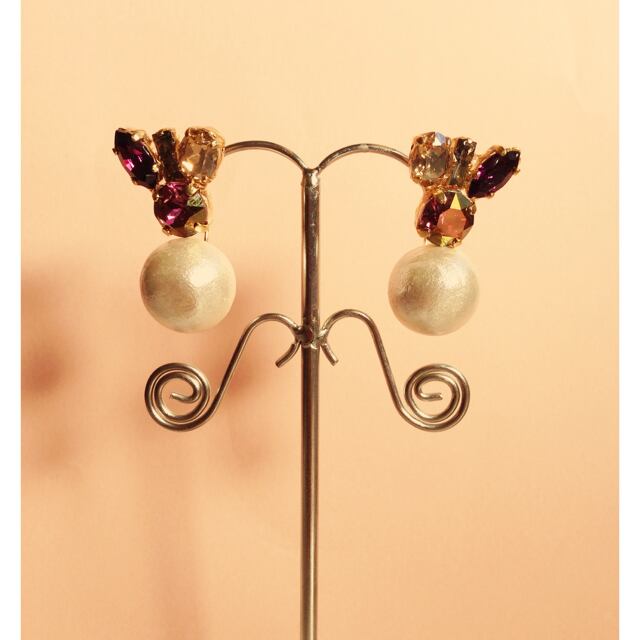 キャッチ部分がコットンパールです。他のピアスと組み合わせも出来るので楽しめます♡