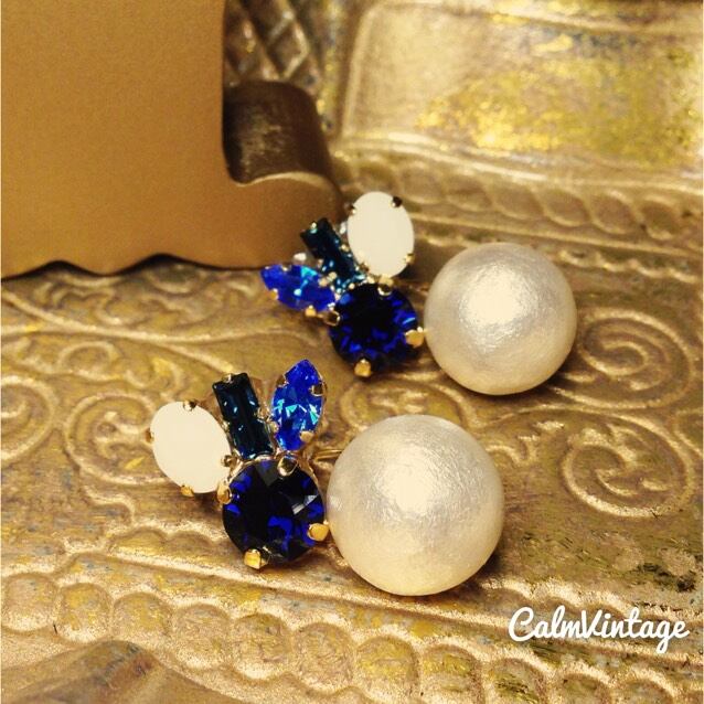 "Puerto"のピアスにキャッチ部分がコットンパールです♡