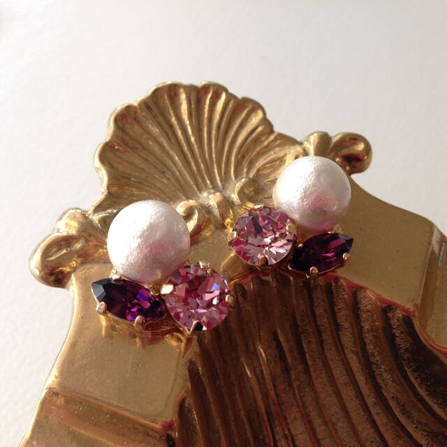 Antique pink/アメジストcolorのストーンなので優しいAntiqueな雰囲気が出ていて綺麗な色味のbijouピアスです♡