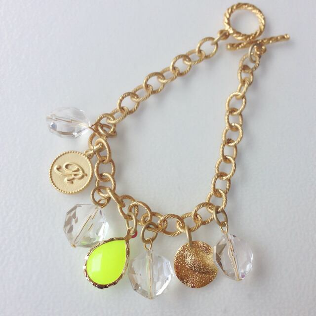 クリア×ビビットイエローが夏らしくてつけているだけで元気になるようなブレスレットです。