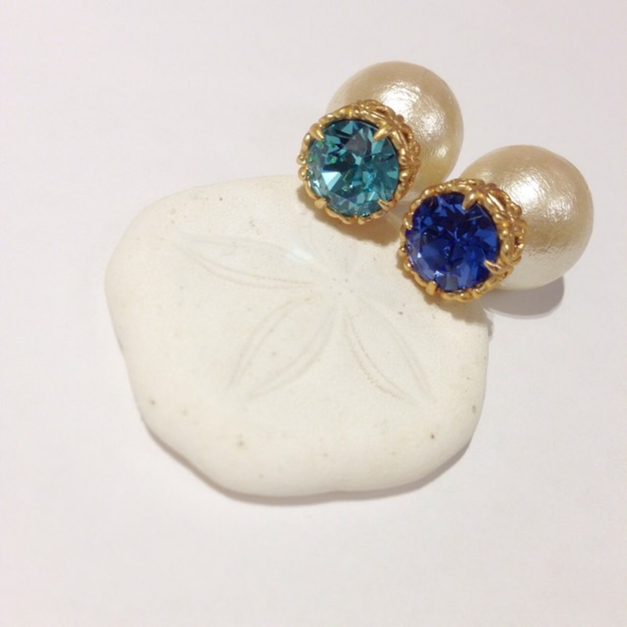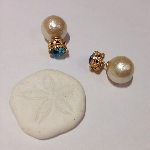 耳たぶの後ろからピアスを指して頂くと前にコットンパールがくるので2wayでお使い頂けます♡