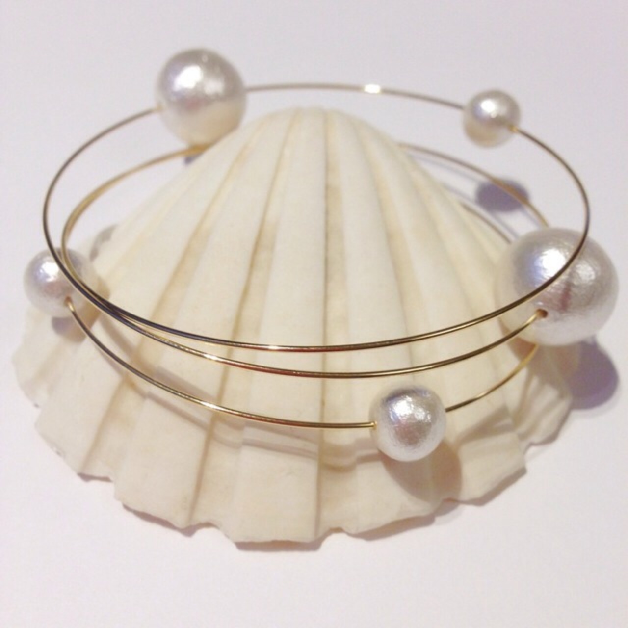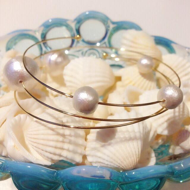 ランダムな大きさのコットンパールの3連ブレスです♡